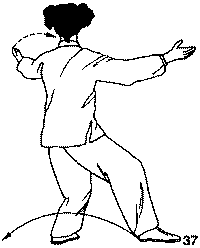 5. Все вышеописанные движения рук вперед-назад, промежуточный шаг и перемещение назад выполняются только за поворотом туловища. Например, такое незначительное движение, как вращение стопы впередистоящей ноги около своего носка, должно быть скоординировано, насколько это возможно, с поворотом туловища назад.